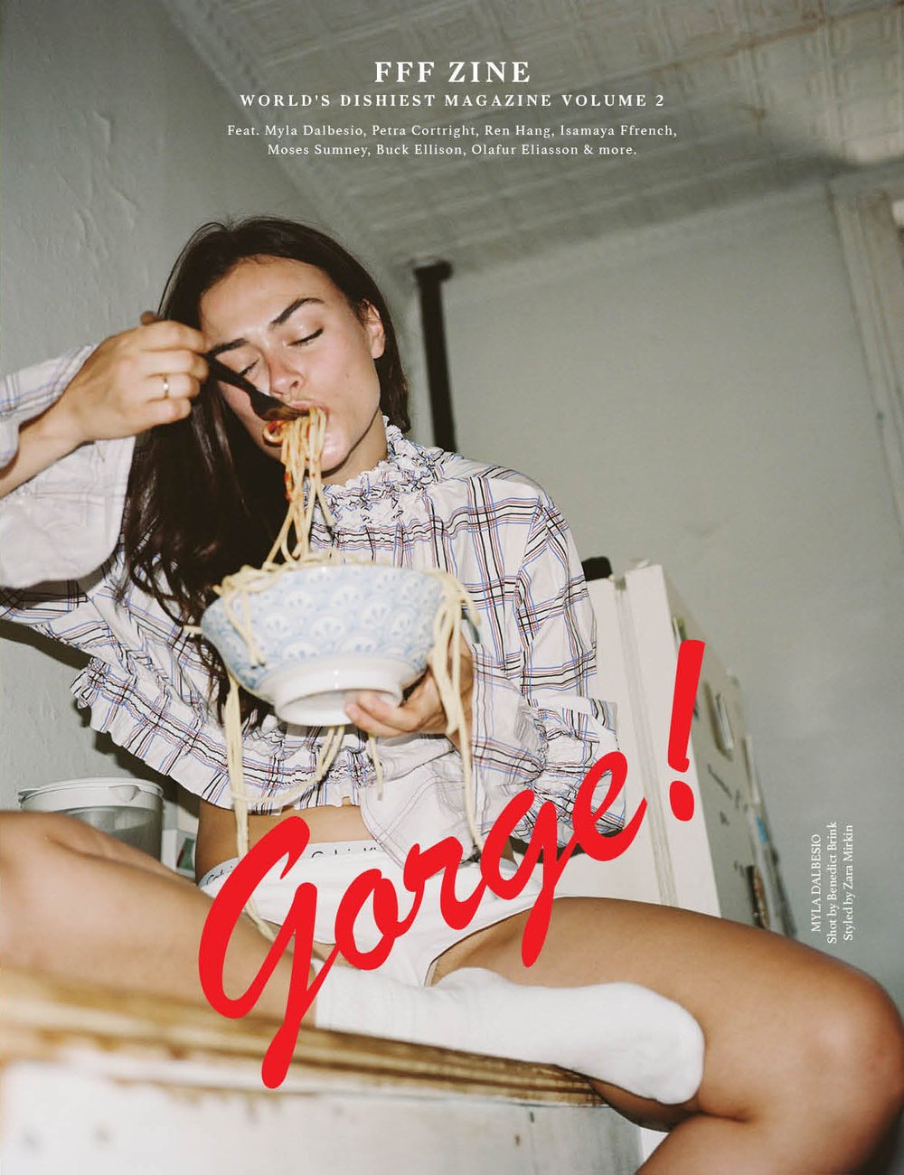 This issue’s GORGE cover features the phenomenal feminist artist and model Myla Dalbesio, in a sensational 16-page story photographed by NYC’s Benedict Brink and styled by Zara Mirkin.